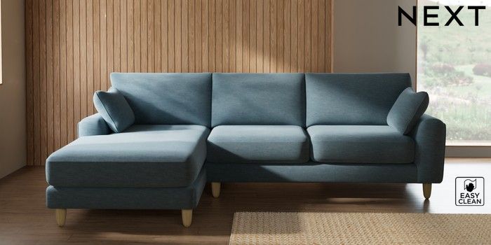 7.2.10 Buy Campbell Medium Sofa Chaise - Left Hand Fine Chenille Easy Clean Mid Blue High Leg - Light from the Seasons online shop Click here to use our website with more accessibility support, for example screen readers