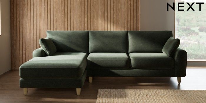 7.2.10 Buy Campbell Medium Sofa Chaise - Left Hand Luxe Chenille Mid Green High Leg - Light from the Seasons online shop Click here to use our website with more accessibility support, for example screen readers