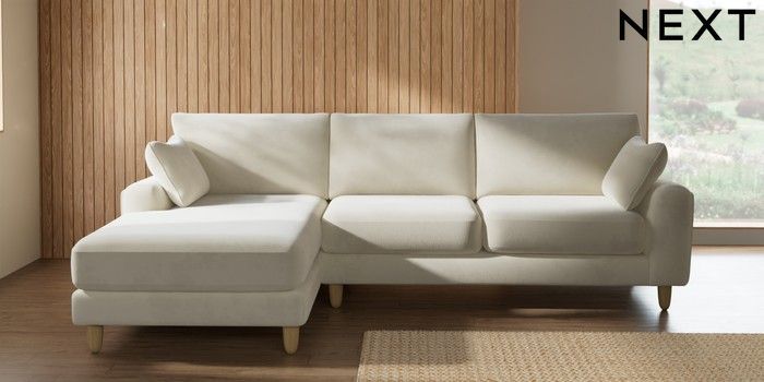 7.2.10 Buy Campbell Medium Sofa Chaise - Left Hand Luxe Chenille Oyster High Leg - Light from the Seasons online shop Click here to use our website with more accessibility support, for example screen readers