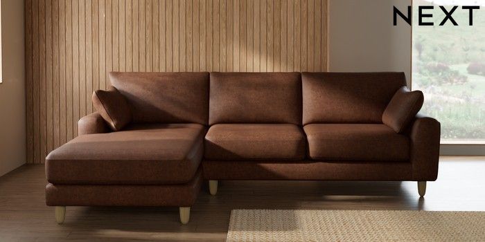 7.3.1 Buy Campbell Medium Sofa Chaise - Left Hand Monza Faux Leather Easy Clean Chestnut Brown High Leg - Light from the Seasons online shop Click here to use our website with more accessibility support, for example screen readers