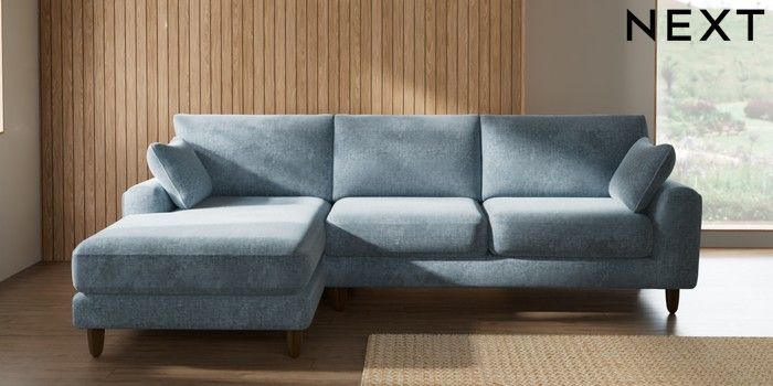 7.2.10 Buy Campbell Medium Sofa Chaise - Left Hand Plush Chenille Light Blue High Leg - Mid from the Seasons online shop Click here to use our website with more accessibility support, for example screen readers