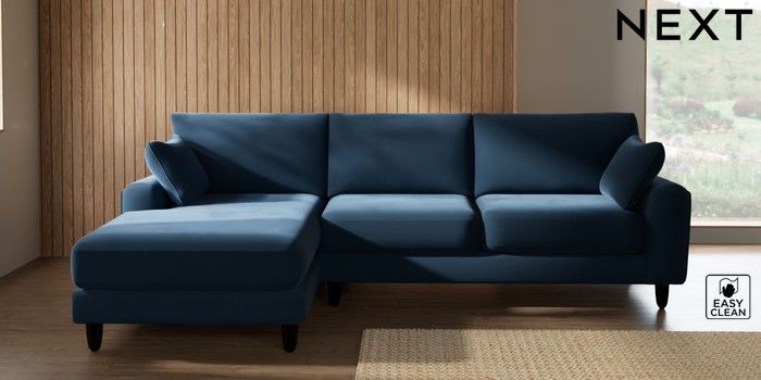 7.3.1 Buy Campbell Medium Sofa Chaise - Left Hand Plush Velvet Easy Clean Airforce Blue High Leg - Dark from the Seasons online shop Click here to use our website with more accessibility support, for example screen readers