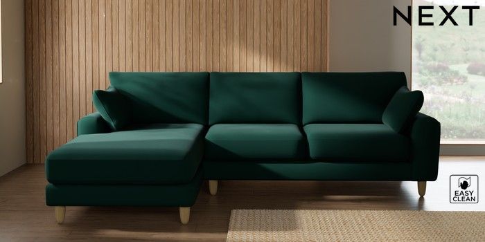 7.3.1 Buy Campbell Medium Sofa Chaise - Left Hand Plush Velvet Easy Clean Bottle Green High Leg - Light from the Seasons online shop Click here to use our website with more accessibility support, for example screen readers