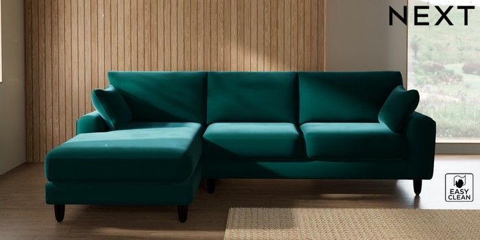 7.3.1 Buy Campbell Medium Sofa Chaise - Left Hand Plush Velvet Easy Clean Juniper Green High Leg - Dark from the Seasons online shop Click here to use our website with more accessibility support, for example screen readers