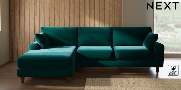 7.3.1 Buy Campbell Medium Sofa Chaise - Left Hand Plush Velvet Easy Clean Juniper Green High Leg - Mid from the Seasons online shop Click here to use our website with more accessibility support, for example screen readers