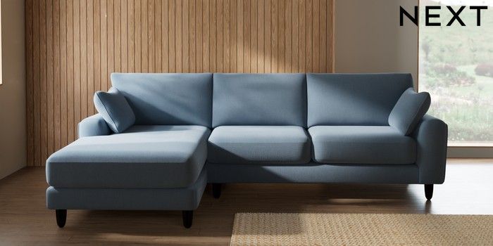 7.2.10 Buy Campbell Medium Sofa Chaise - Left Hand Relaxed Linen Look Mid Blue High Leg - Dark from the Seasons online shop Click here to use our website with more accessibility support, for example screen readers