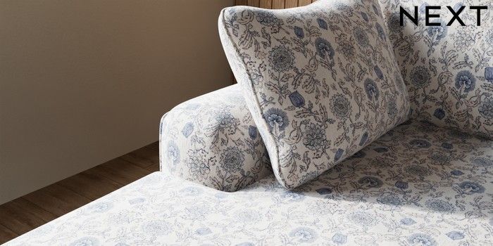 7.3.1 Buy Campbell Medium Sofa Chaise - Left Hand Relaxed Linen Look Print Woodblock Floral Blue High Leg - Light from the Seasons online shop Click here to use our website with more accessibility support, for example screen readers