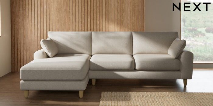 7.2.10 Buy Campbell Medium Sofa Chaise - Left Hand Tweedy Chenille Oyster High Leg - Light from the Seasons online shop Click here to use our website with more accessibility support, for example screen readers