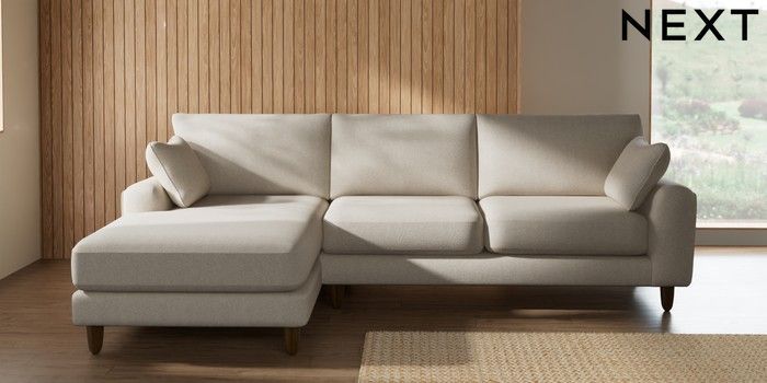 7.2.10 Buy Campbell Medium Sofa Chaise - Left Hand Tweedy Chenille Oyster High Leg - Mid from the Seasons online shop Click here to use our website with more accessibility support, for example screen readers