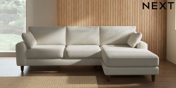 7.2.10 Buy Campbell Medium Sofa Chaise - Right Hand Chunky Texture Oyster High Leg - Mid from the Seasons online shop Click here to use our website with more accessibility support, for example screen readers