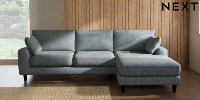 7.2.10 Buy Campbell Medium Sofa Chaise - Right Hand Chunky Weave Mid Blue High Leg - Dark from the Seasons online shop Click here to use our website with more accessibility support, for example screen readers