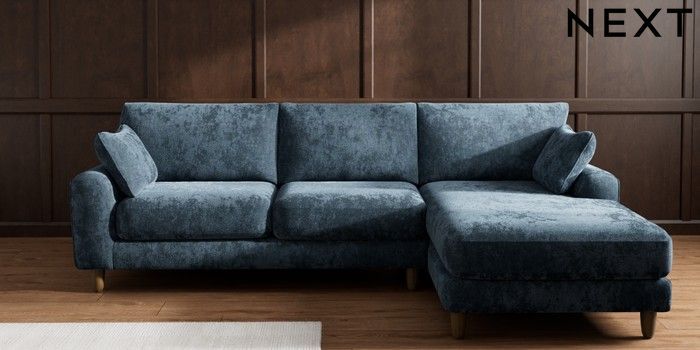 7.2.10 Buy Campbell Medium Sofa Chaise - Right Hand Distressed Velour Midnight Blue High Leg - Mid from the Seasons online shop Click here to use our website with more accessibility support, for example screen readers