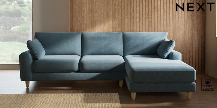 7.2.10 Buy Campbell Medium Sofa Chaise - Right Hand Fine Chenille Easy Clean Mid Blue High Leg - Light from the Seasons online shop Click here to use our website with more accessibility support, for example screen readers