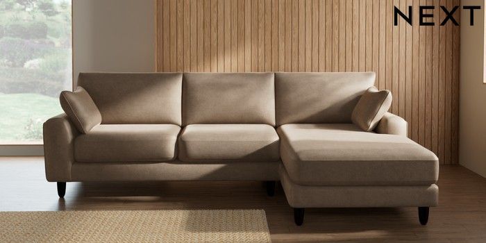 7.2.10 Buy Campbell Medium Sofa Chaise - Right Hand Luxe Chenille Mid Camel Beige High Leg - Dark from the Seasons online shop Click here to use our website with more accessibility support, for example screen readers