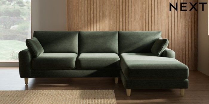 7.2.10 Buy Campbell Medium Sofa Chaise - Right Hand Luxe Chenille Mid Green High Leg - Light from the Seasons online shop Click here to use our website with more accessibility support, for example screen readers