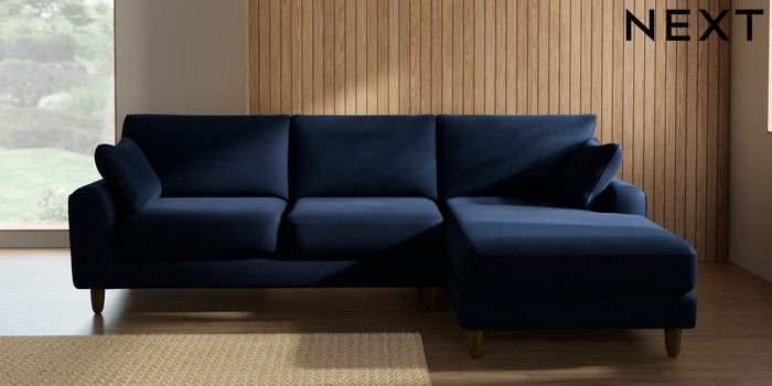 7.2.10 Buy Campbell Medium Sofa Chaise - Right Hand Luxe Chenille Navy Blue High Leg - Mid from the Seasons online shop Click here to use our website with more accessibility support, for example screen readers