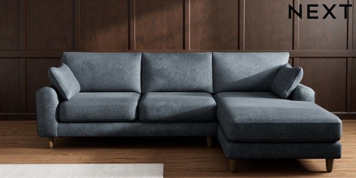 7.2.10 Buy Campbell Medium Sofa Chaise - Right Hand Plush Chenille Slate Blue High Leg - Mid from the Seasons online shop Click here to use our website with more accessibility support, for example screen readers