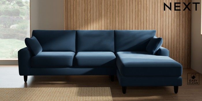 7.3.1 Buy Campbell Medium Sofa Chaise - Right Hand Plush Velvet Easy Clean Airforce Blue High Leg - Dark from the Seasons online shop Click here to use our website with more accessibility support, for example screen readers