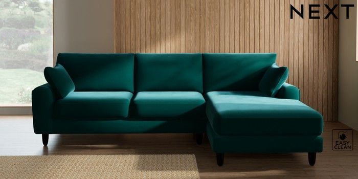 7.3.1 Buy Campbell Medium Sofa Chaise - Right Hand Plush Velvet Easy Clean Juniper Green High Leg - Dark from the Seasons online shop Click here to use our website with more accessibility support, for example screen readers