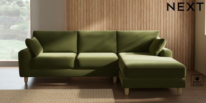 7.3.1 Buy Campbell Medium Sofa Chaise - Right Hand Plush Velvet Easy Clean Mid Olive Green High Leg - Light from the Seasons online shop Click here to use our website with more accessibility support, for example screen readers