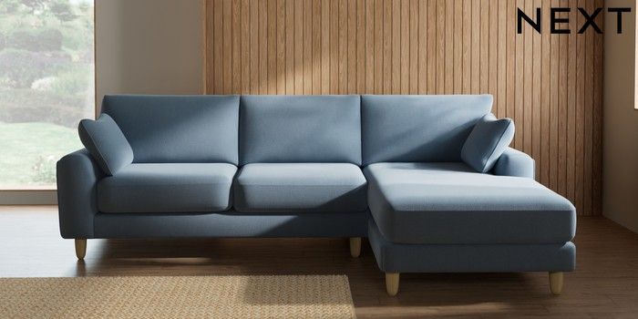 7.2.10 Buy Campbell Medium Sofa Chaise - Right Hand Relaxed Linen Look Mid Blue High Leg - Light from the Seasons online shop Click here to use our website with more accessibility support, for example screen readers