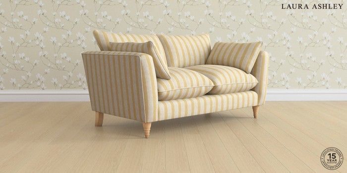 7.3.1 Buy Casterton by Laura Ashley 2 Seater Sofa Kinsham Stripe Ochre Yellow Low Turned - Light Oak from the Seasons online shop Click here to use our website with more accessibility support, for example screen readers