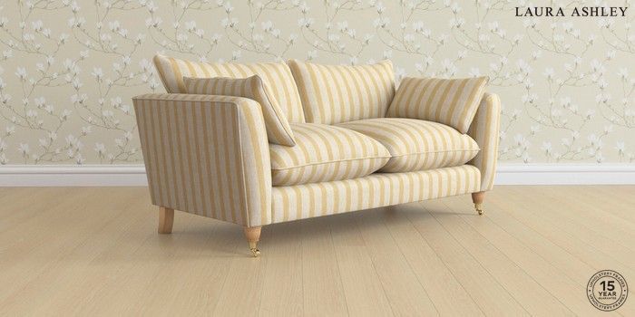 7.3.1 Buy Casterton by Laura Ashley 3 Seater Small Sofa Kinsham Stripe Ochre Yellow Low Brass Castor - Light Oak from the Seasons online shop Click here to use our website with more accessibility support, for example screen readers