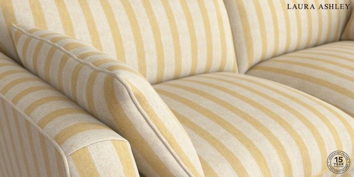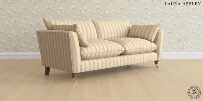 7.3.1 Buy Casterton by Laura Ashley 3 Seater Sofa Kinsham Stripe Ochre Yellow Low Brass Castor - Teak from the Seasons online shop Click here to use our website with more accessibility support, for example screen readers