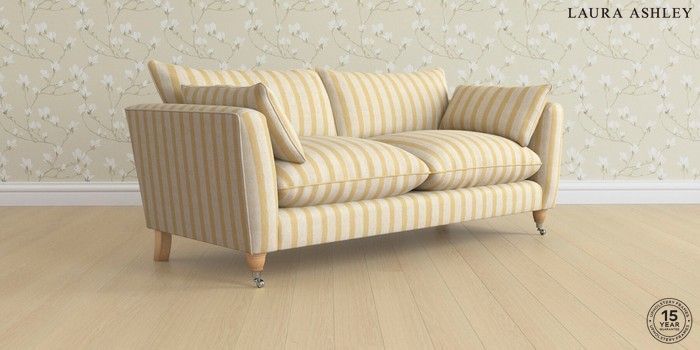 7.3.1 Buy Casterton by Laura Ashley 3 Seater Sofa Kinsham Stripe Ochre Yellow Low Chrome Castor - Light Oak from the Seasons online shop Click here to use our website with more accessibility support, for example screen readers