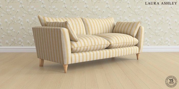 7.3.1 Buy Casterton by Laura Ashley 3 Seater Sofa Kinsham Stripe Ochre Yellow Low Turned - Light Oak from the Seasons online shop Click here to use our website with more accessibility support, for example screen readers