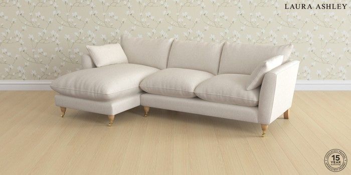 7.3.1 Buy Casterton by Laura Ashley Medium Sofa Chaise - Left Hand Anneliese Oyster Natural Low Brass Castor - Light Oak from the Seasons online shop Click here to use our website with more accessibility support, for example screen readers