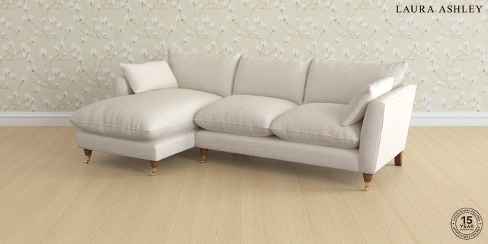 7.3.1 Buy Casterton by Laura Ashley Medium Sofa Chaise - Left Hand Anneliese Oyster Natural Low Brass Castor - Teak from the Seasons online shop Click here to use our website with more accessibility support, for example screen readers