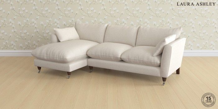 7.3.1 Buy Casterton by Laura Ashley Medium Sofa Chaise - Left Hand Anneliese Oyster Natural Low Chrome Castor - Chestnut from the Seasons online shop Click here to use our website with more accessibility support, for example screen readers