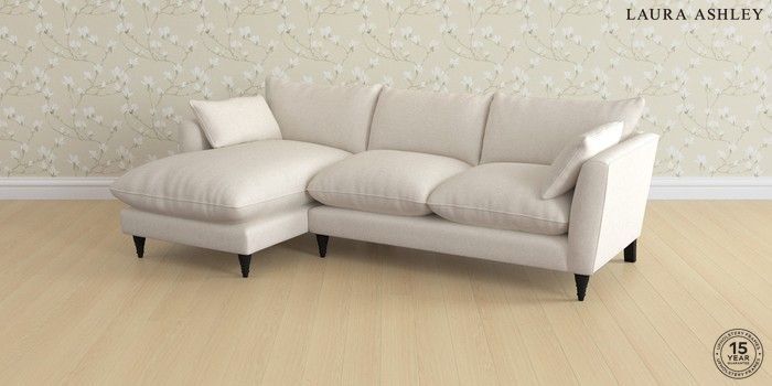 7.3.1 Buy Casterton by Laura Ashley Medium Sofa Chaise - Left Hand Anneliese Oyster Natural Low Turned - Black from the Seasons online shop Click here to use our website with more accessibility support, for example screen readers