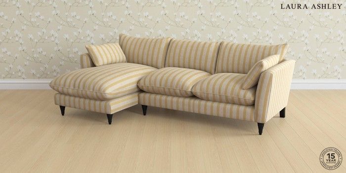 7.3.1 Buy Casterton by Laura Ashley Medium Sofa Chaise - Left Hand Kinsham Stripe Ochre Yellow Low Turned - Black from the Seasons online shop Click here to use our website with more accessibility support, for example screen readers