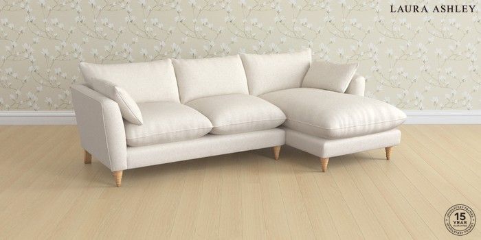 7.3.1 Buy Casterton by Laura Ashley Medium Sofa Chaise - Right Hand Anneliese Oyster Natural Low Turned - Light Oak from the Seasons online shop Click here to use our website with more accessibility support, for example screen readers