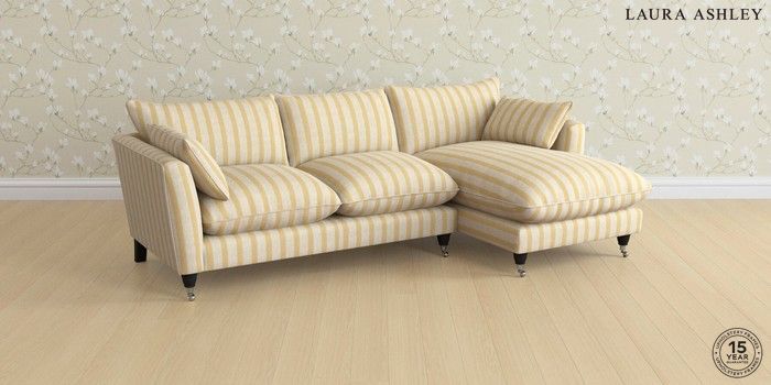 7.3.1 Buy Casterton by Laura Ashley Medium Sofa Chaise - Right Hand Kinsham Stripe Ochre Yellow Low Chrome Castor - Black from the Seasons online shop Click here to use our website with more accessibility support, for example screen readers