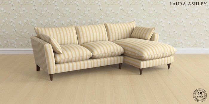 7.3.1 Buy Casterton by Laura Ashley Medium Sofa Chaise - Right Hand Kinsham Stripe Ochre Yellow Low Turned - Chestnut from the Seasons online shop Click here to use our website with more accessibility support, for example screen readers