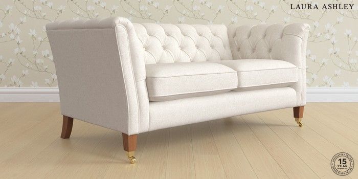 7.3.1 Buy Chatsworth Button Back by Laura Ashley 2 Seater Sofa Anneliese Oyster Natural Straight Brass Castor - Teak from the Seasons online shop