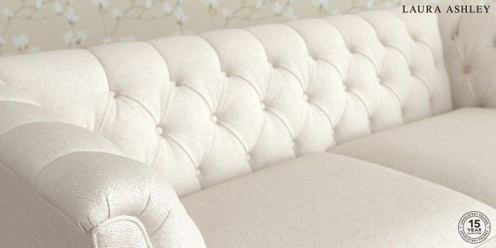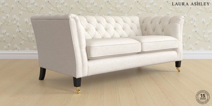 7.3.1 Buy Chatsworth Button Back by Laura Ashley 3 Seater Small Sofa Anneliese Oyster Natural Straight Brass Castor - Black from the Seasons online shop