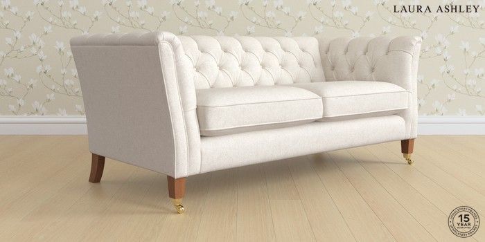 7.3.1 Buy Chatsworth Button Back by Laura Ashley 3 Seater Small Sofa Anneliese Oyster Natural Straight Brass Castor - Teak from the Seasons online shop