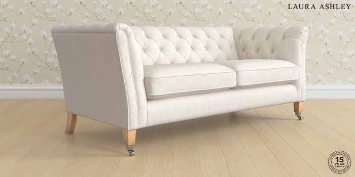 7.3.1 Buy Chatsworth Button Back by Laura Ashley 3 Seater Small Sofa Anneliese Oyster Natural Straight Chrome Castor - Light Oak from the Seasons online shop Click here to use our website with more accessibility support, for example screen readers
