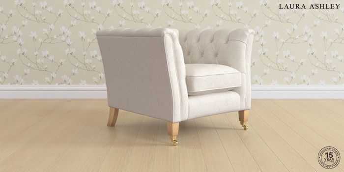 7.3.1 Buy Chatsworth Button Back by Laura Ashley Armchair Anneliese Oyster Natural Straight Brass Castor - Light Oak from the Seasons online shop