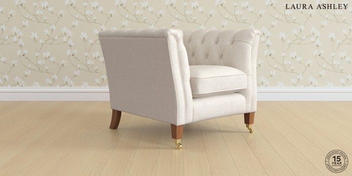 7.3.1 Buy Chatsworth Button Back by Laura Ashley Armchair Anneliese Oyster Natural Straight Brass Castor - Teak from the Seasons online shop