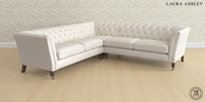 7.3.1 Buy Chatsworth Button Back by Laura Ashley Medium Corner Sofa - Universal Anneliese Oyster Natural Straight Chrome Castor - Chestnut from the Seasons online shop Click here to use our website with more accessibility support, for example screen readers