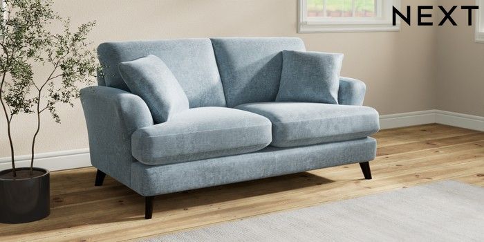 7.2.10 Buy Conway Relaxed Sit 2 Seater Sofa Plush Chenille Light Blue Low Retro Tapered - Dark from the Seasons online shop Click here to use our website with more accessibility support, for example screen readers
