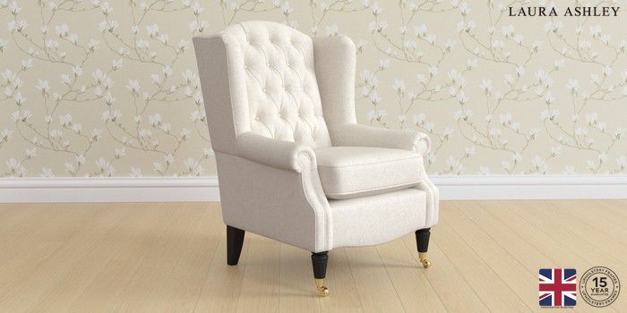 7.3.1 Buy Enderby Buttoned by Laura Ashley Armchair Anneliese Oyster Natural Unique Brass Castor - Black from the Seasons online shop Click here to use our website with more accessibility support, for example screen readers
