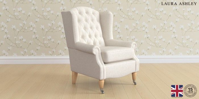 7.3.1 Buy Enderby Buttoned by Laura Ashley Armchair Anneliese Oyster Natural Unique Chrome Castor - Light Oak from the Seasons online shop Click here to use our website with more accessibility support, for example screen readers