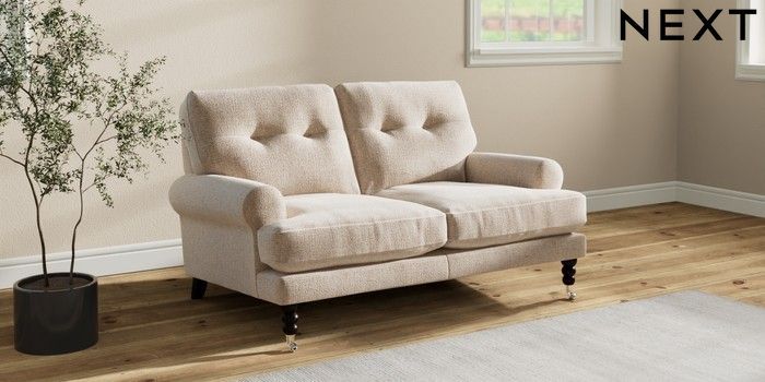 Add charm to your living space with the Erin Button Back Sofa. Its elegant scroll arms and classic button-back cushions create a timeless look. You'll love its "Relaxed Sit" cushions, specially designed for ultimate comfort. These cushions are made with clever foam and fibre, giving you a wonderfully soft, plump feel. To keep them looking their best, simply plump and turn them regularly. Plus, you can make the Erin your own by choosing from a huge range of coloured fabrics.