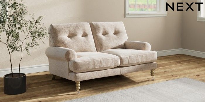Add charm to your living space with the Erin Button Back Sofa. Its elegant scroll arms and classic button-back cushions create a timeless look. You'll love its "Relaxed Sit" cushions, specially designed for ultimate comfort. These cushions are made with clever foam and fibre, giving you a wonderfully soft, plump feel. To keep them looking their best, simply plump and turn them regularly. Plus, you can make the Erin your own by choosing from a huge range of coloured fabrics.